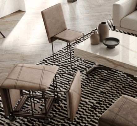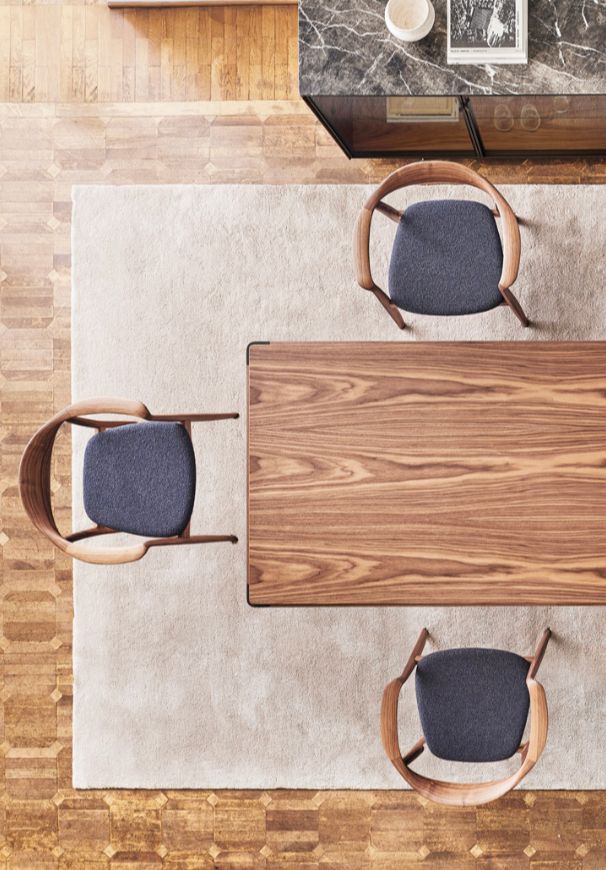 Un protagonista che può attingere alla coinvolgente fantasia dei taftati, alle emozioni materiche dei tappeti di tendenza, alla ricca sobrietà delle fibre naturali e alla straordinaria ricchezza composita dei kilim e annodati di varie origini ed epoche. Ieri come oggi in perfetta armonia.