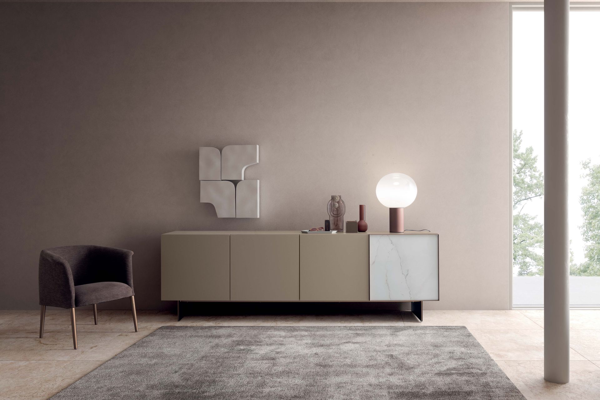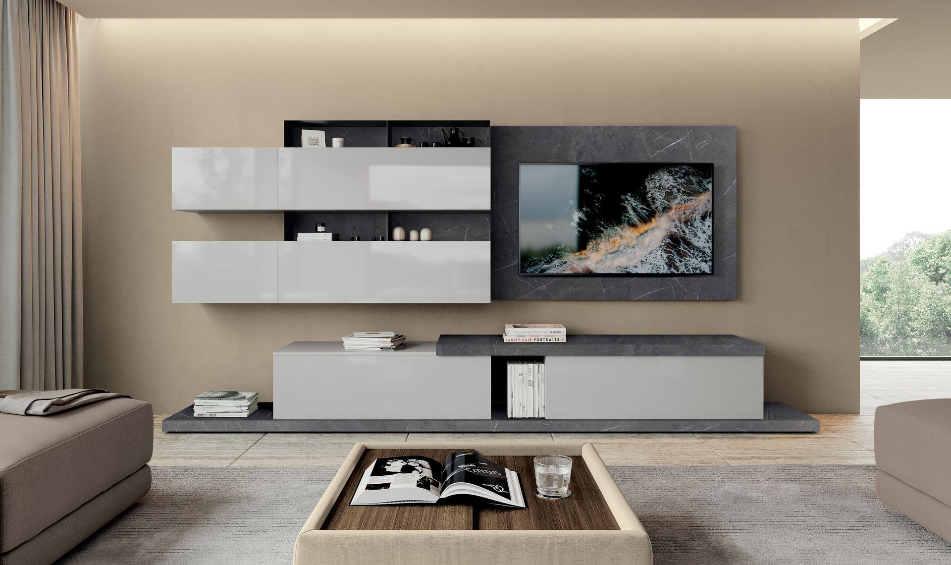Presso il nostro showroom Febal Casa Bergamo è possibile visionare anche mobili living a marchio Momenti.